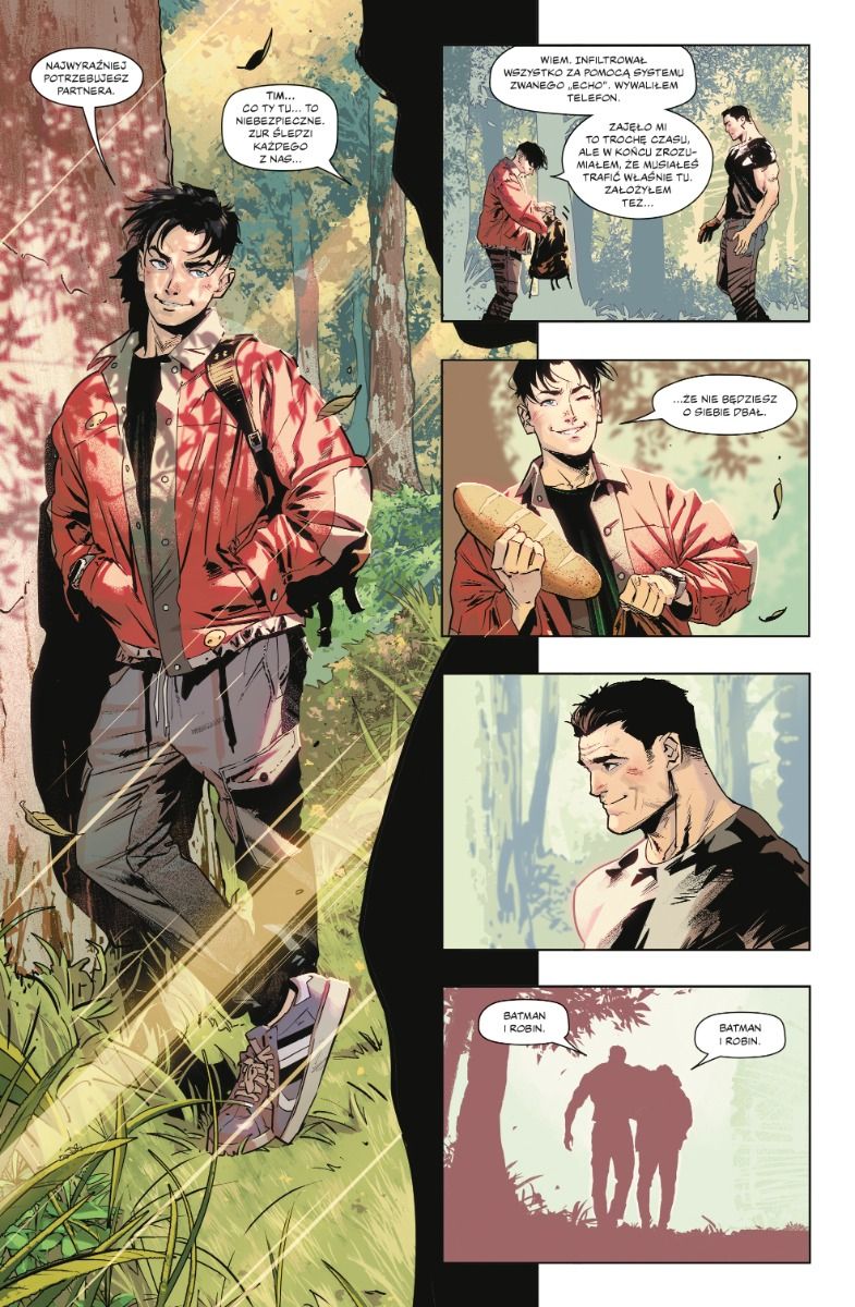 Chip Zdarsky robi doskonałą robotę jeśli chodzi o ukazanie relacji w batrodzinie. Album ma kilka naprawdę znakomitych, bardzo kameralnych momentów pomiędzy różnymi postaciami. Bruce Wayne i Tim Drake, Bruce i Jason Todd, Dick i Barbara i tak dalej. Sceny te bardzo chętnie odwołują się do przeszłości, do klasycznych komiksów z Mrocznym Rycerzem, które zmieniły oblicze DC. Bardzo doceniam robotę, jaką wykonał tutaj scenarzysta!